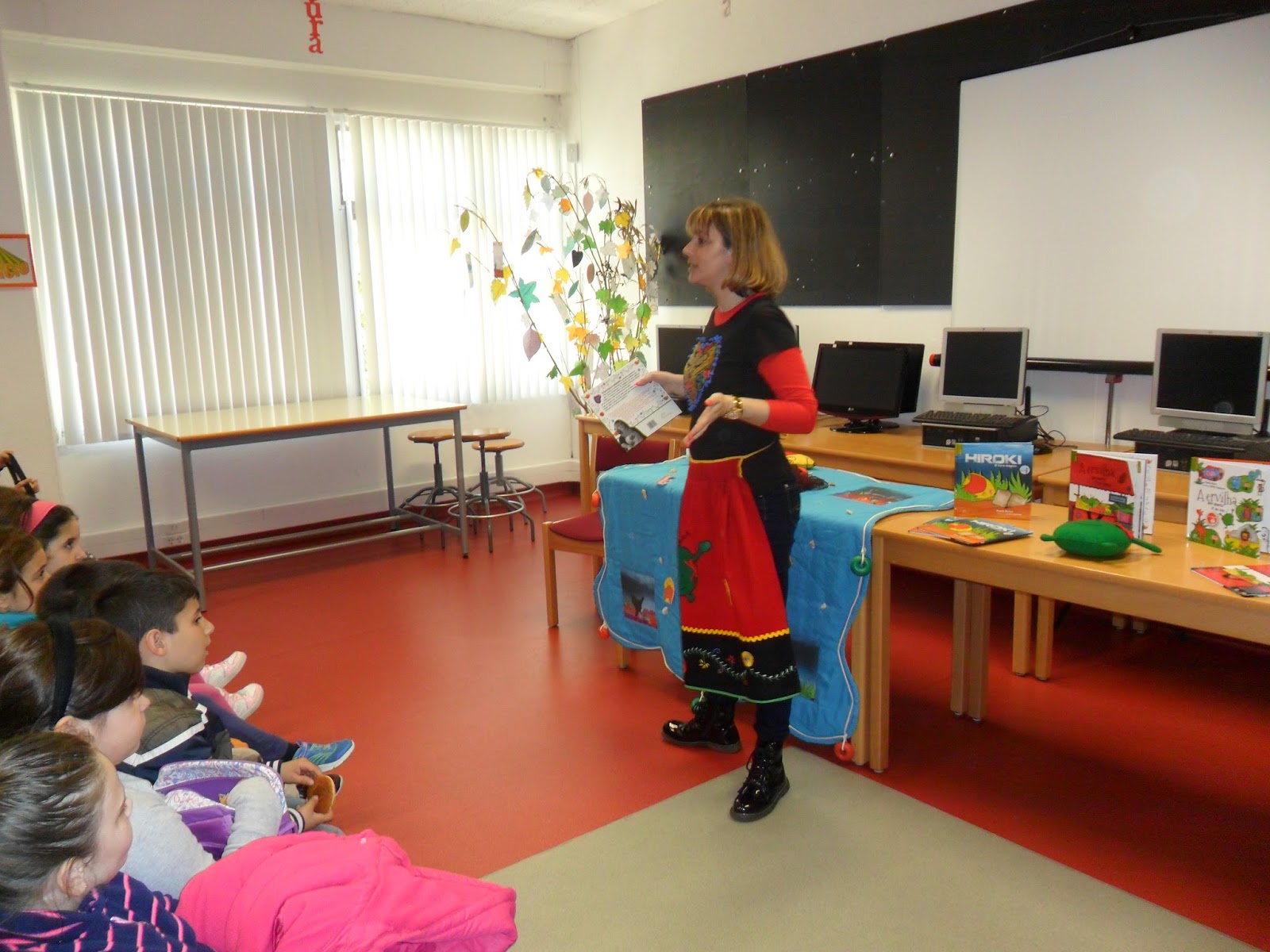 No dia 11 de abril, a escritora Paula Ruivo visitou a BECRE da EB D. Dinis, Odivelas e realizou três sessões, com o 2º A/B da E.B Rainha Santa e 2º A/B/C da E.B Maria Lamas explorando a coleção da Ervilhinha e 5º B e D explorando o livro "Hiroki".